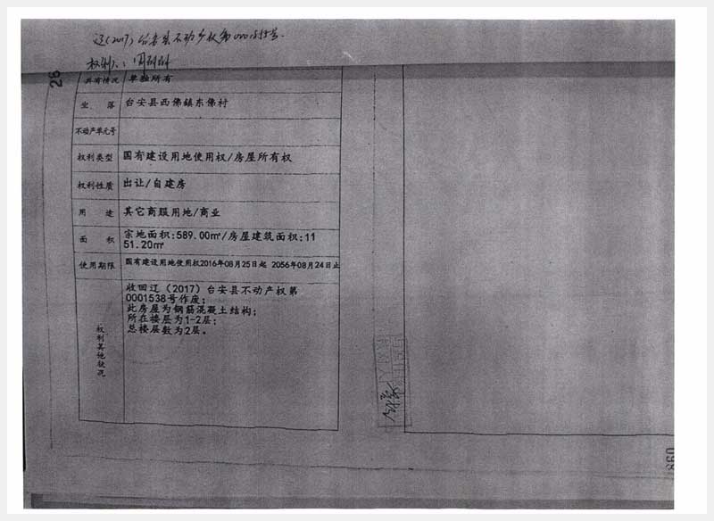 地址:臺(tái)安縣西佛鎮(zhèn)東佛村 標(biāo)的號(hào):133