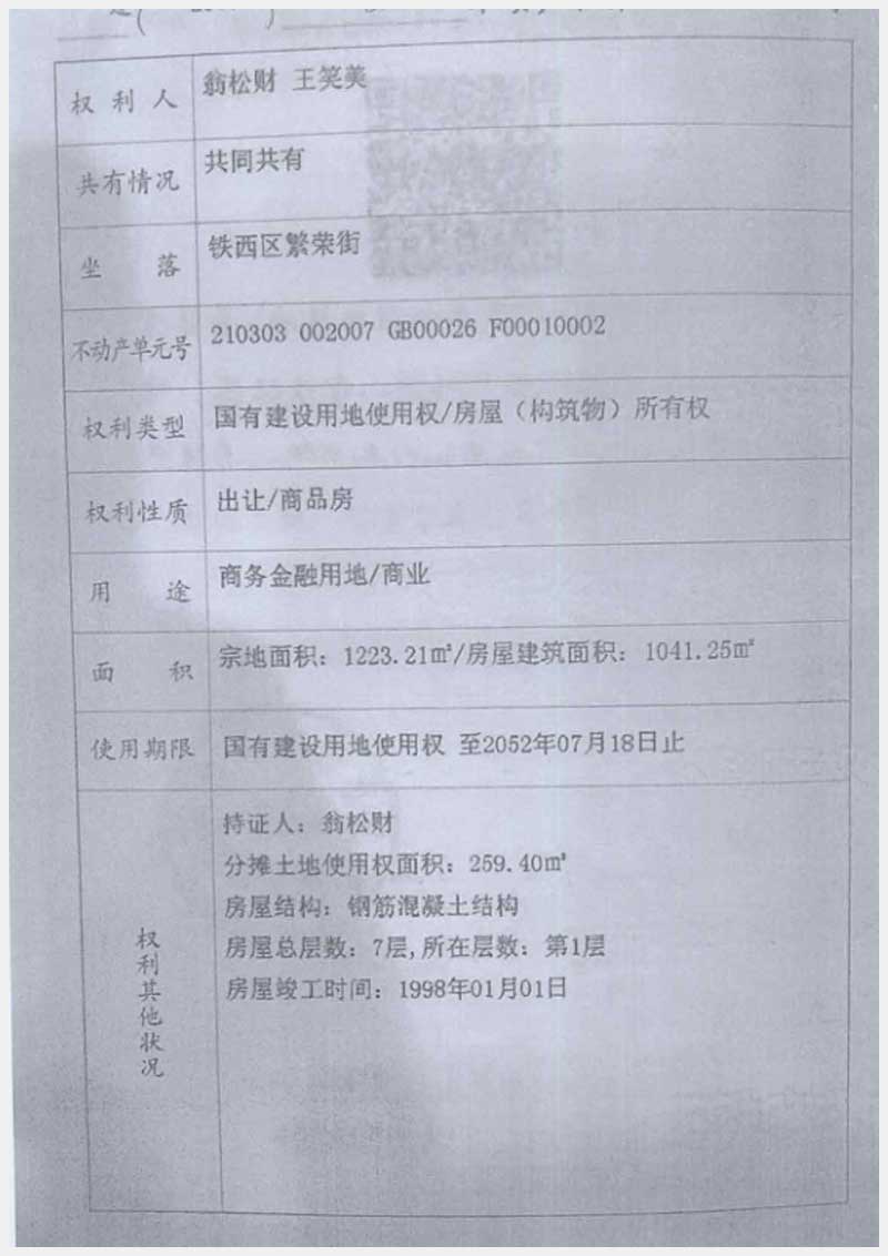 名稱:鞍山市鐵西區(qū)繁榮街房產(chǎn) 面積:1041.25㎡ 瀏覽次數(shù):1224