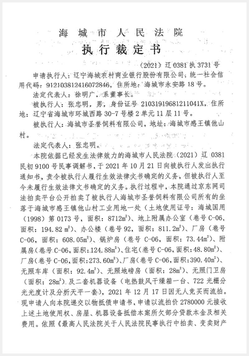 196號 海城市感王鎮(zhèn)他山村房產(chǎn)、土地使用權(quán)及機(jī)器設(shè)備