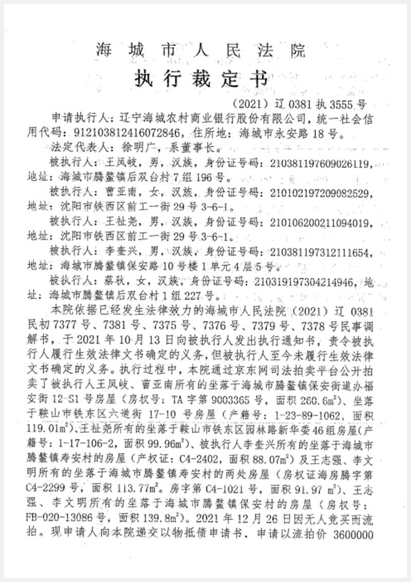 地址:海城市騰鰲鎮(zhèn)壽安村 標的號:225-6