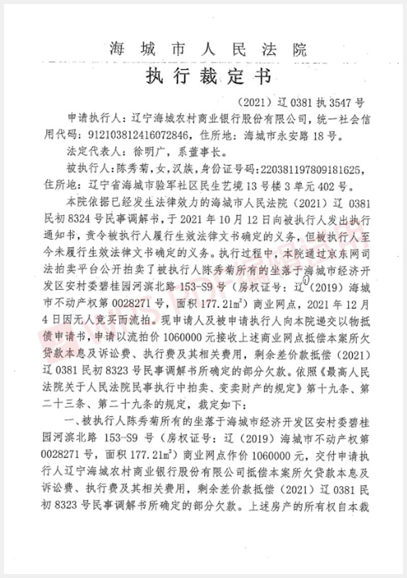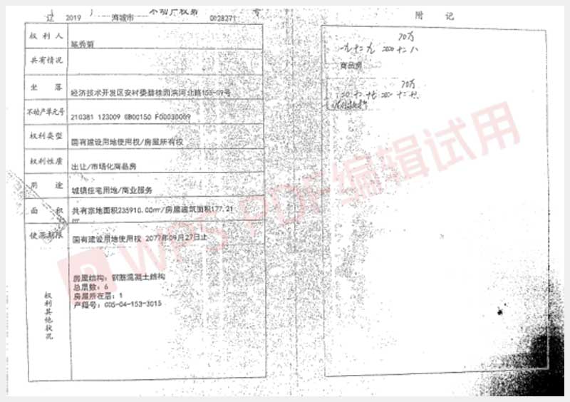 地址:海城經(jīng)濟技術(shù)開發(fā)區(qū)安村委碧桂園濱河北路153-S9號 標的號:236