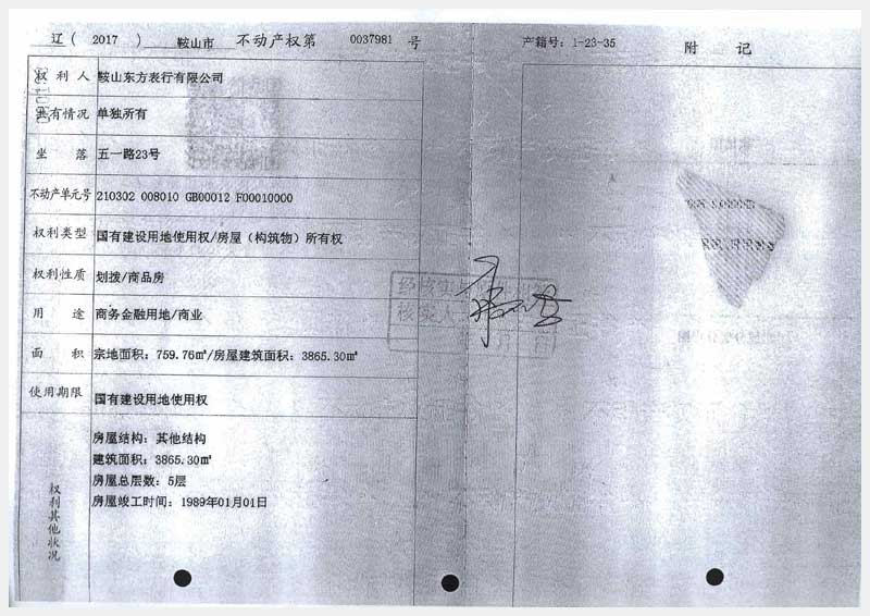 名稱:鞍山市鐵東區(qū)五一路23號房產(chǎn) 面積:3865.3㎡ 瀏覽次數(shù):1049