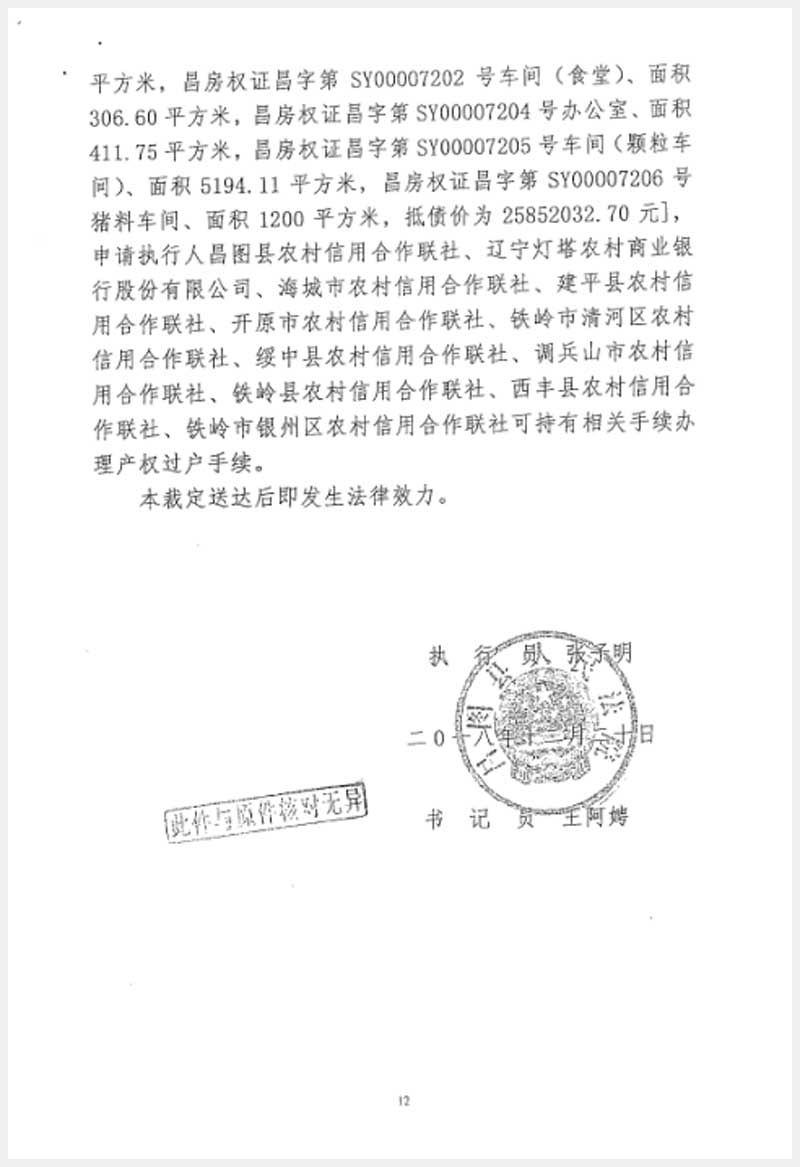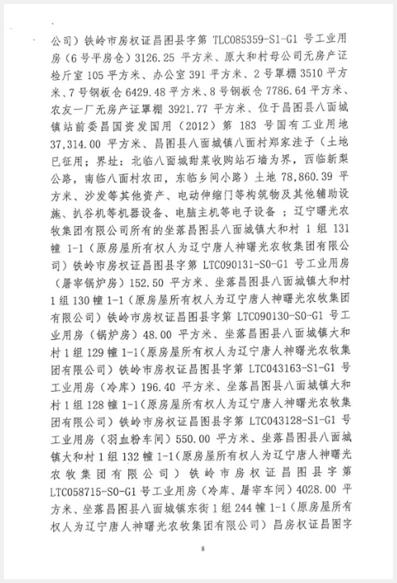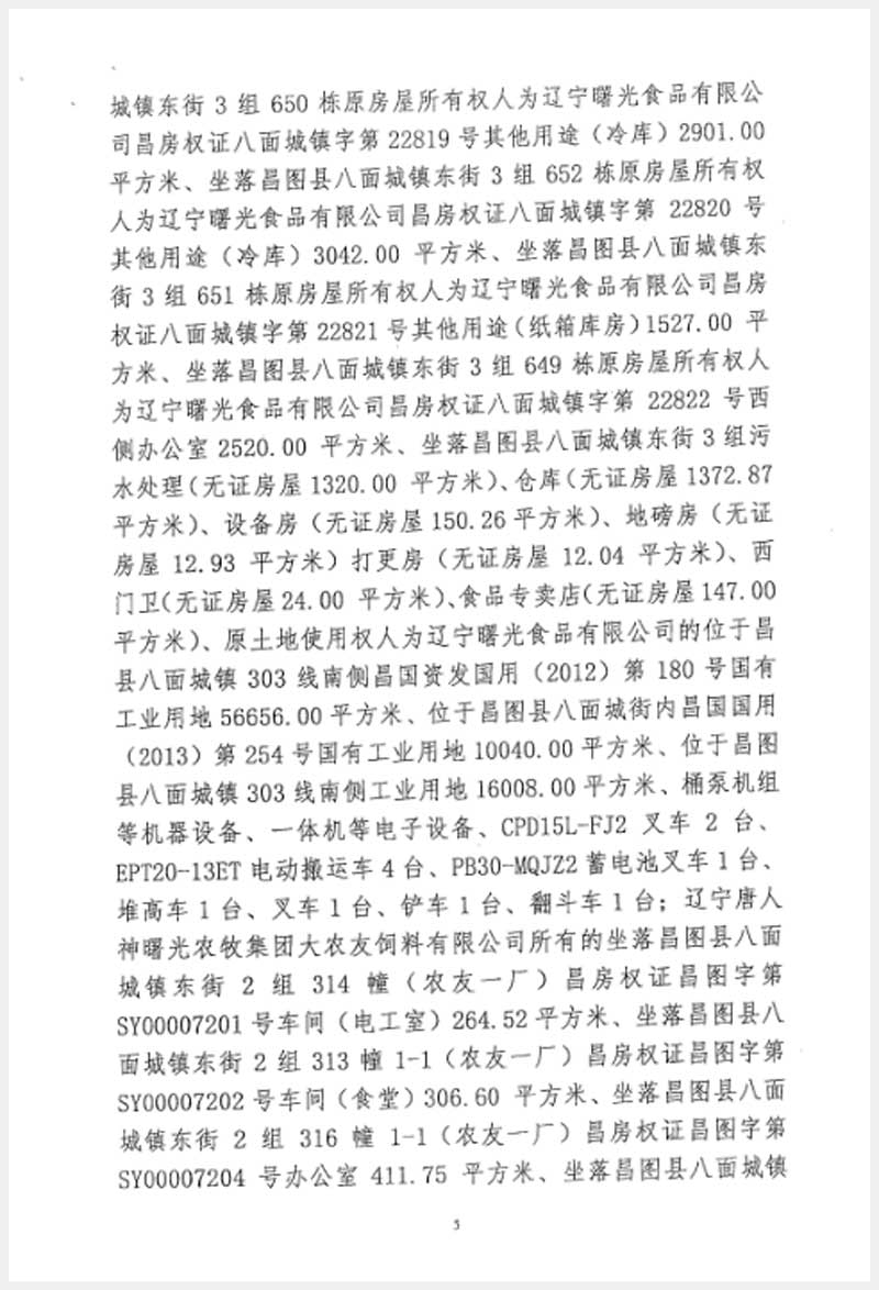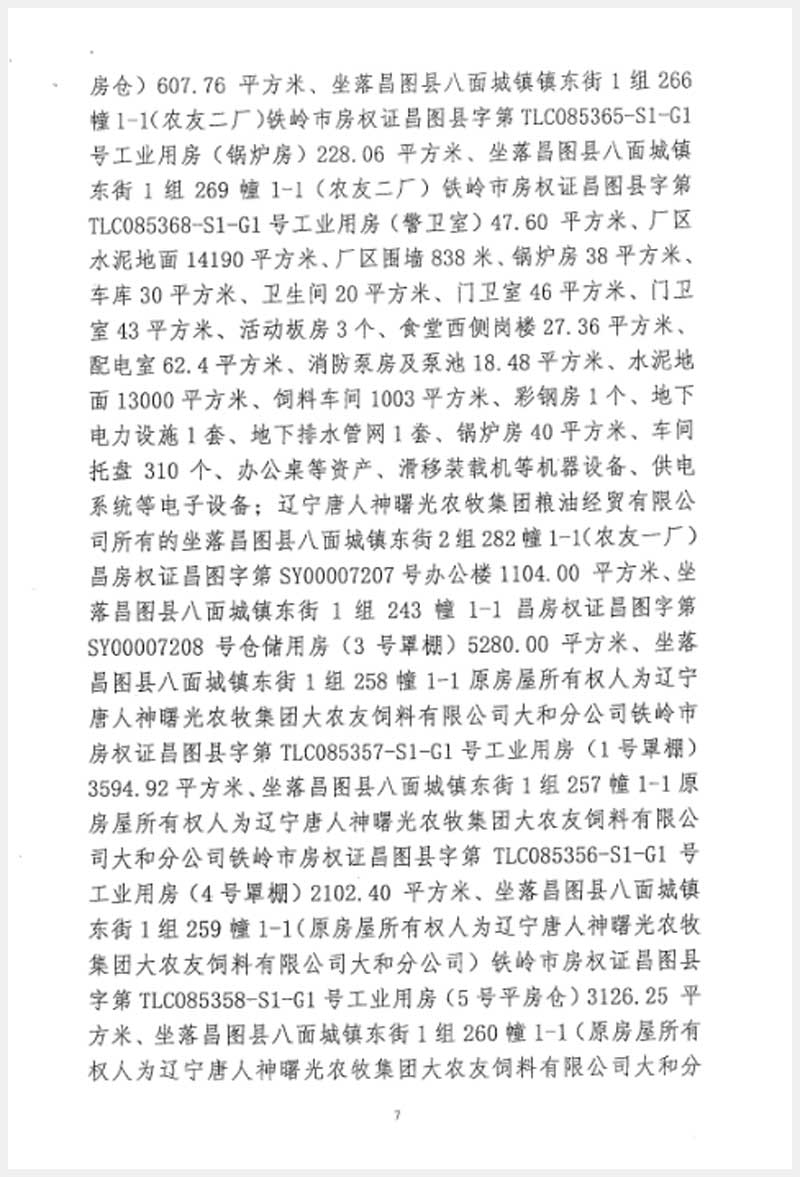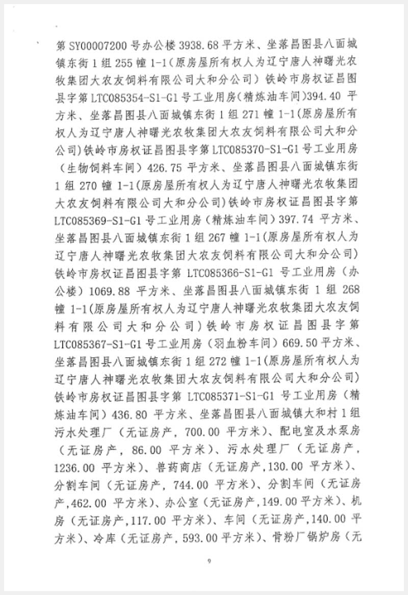 246號 遼寧唐人神曙光農(nóng)牧集團(tuán)大友飼料有限公司房產(chǎn)及設(shè)備
