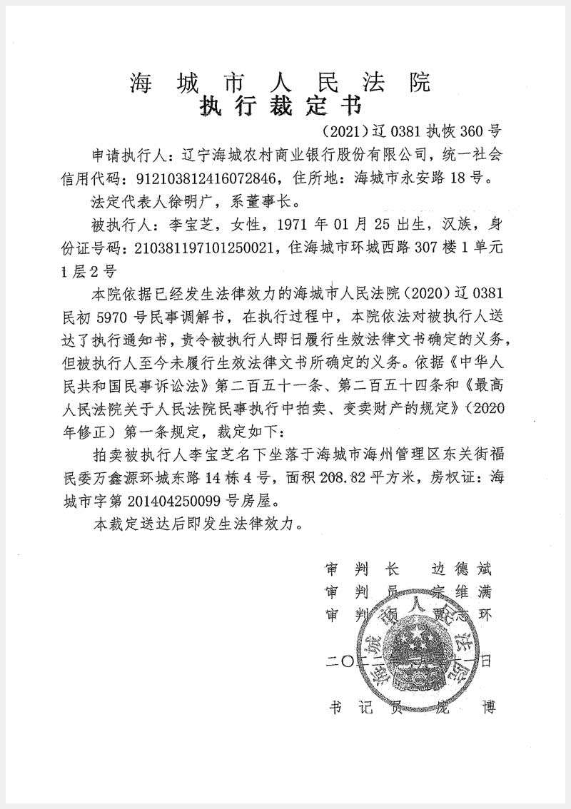 261號 海城市海州管理區(qū)東關(guān)街富民委萬鑫源環(huán)城東路14棟4號房產(chǎn)