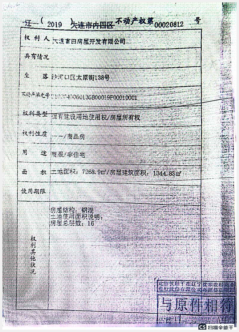 名稱:大連市沙河口區(qū)太原街124號、138號房產(chǎn) 面積:5033.28㎡ 瀏覽次數(shù):570