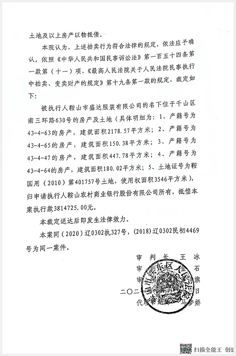 115號 鞍山市千山區(qū)南三環(huán)路630號房產(chǎn)及土地使用權(quán)