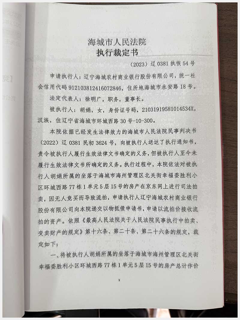 269號(hào) 海城市海州管理區(qū)北關(guān)街幸福委勝利小區(qū)環(huán)城西路77棟1單元5層15號(hào)房產(chǎn)