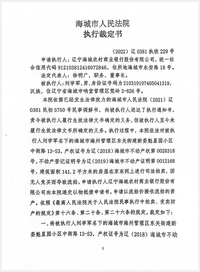 271號(hào) 海城市海州管理區(qū)東關(guān)街建新委魁星園小區(qū)中街路13—S3房產(chǎn)
