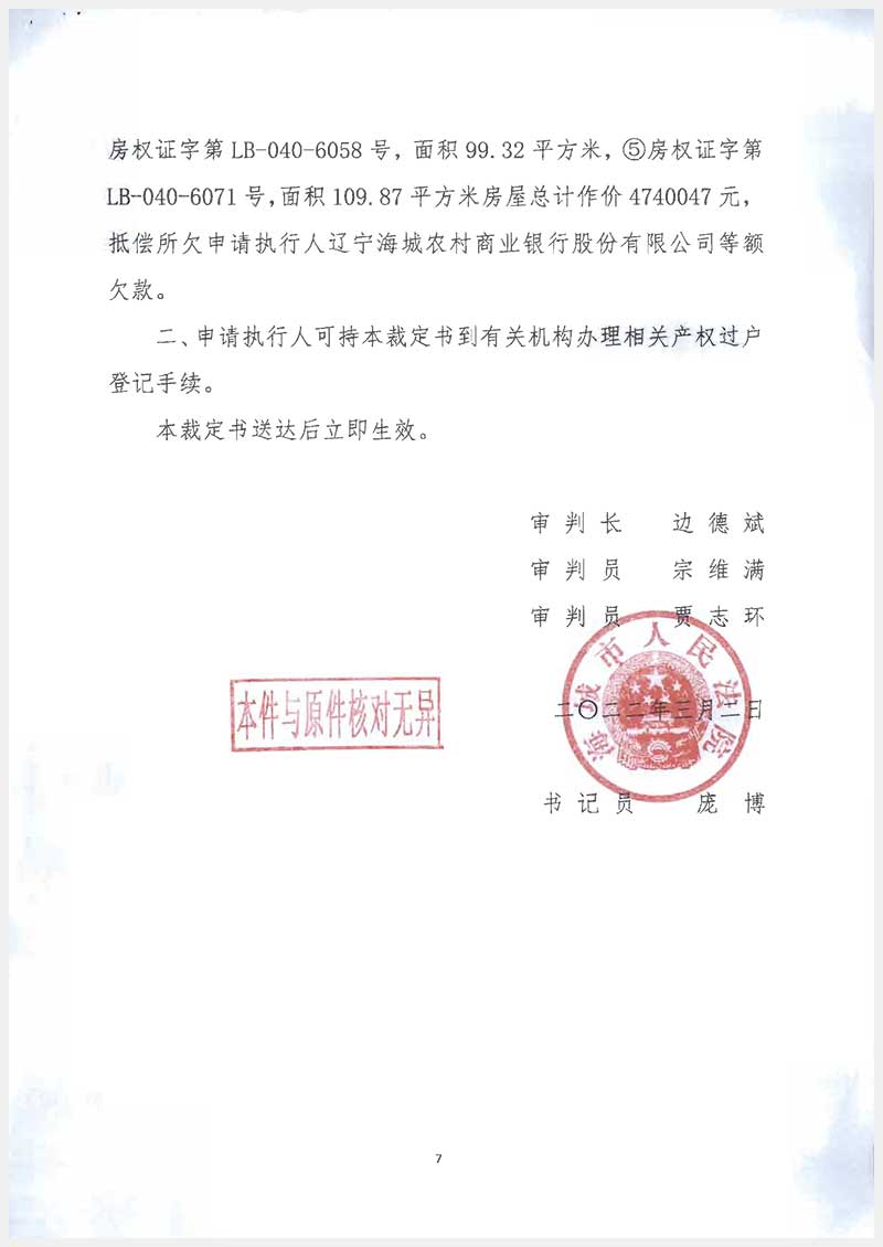 名稱:海城市騰鰲鎮(zhèn)福安街道頤水嘉德二期6處房產(chǎn) 面積:99.32㎡三處;109.87㎡二處;110.08㎡一處 瀏覽次數(shù):65