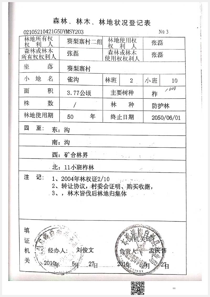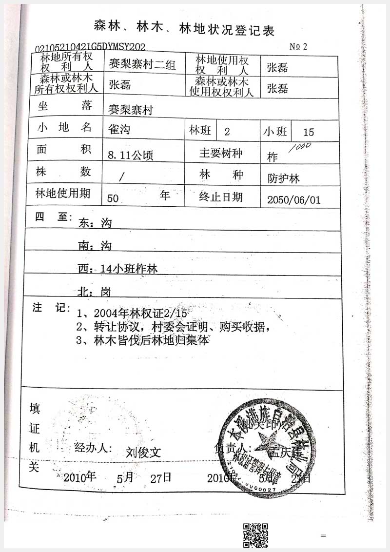 32號 本溪市滿族自治縣賽梨寨村二組林權(quán)
