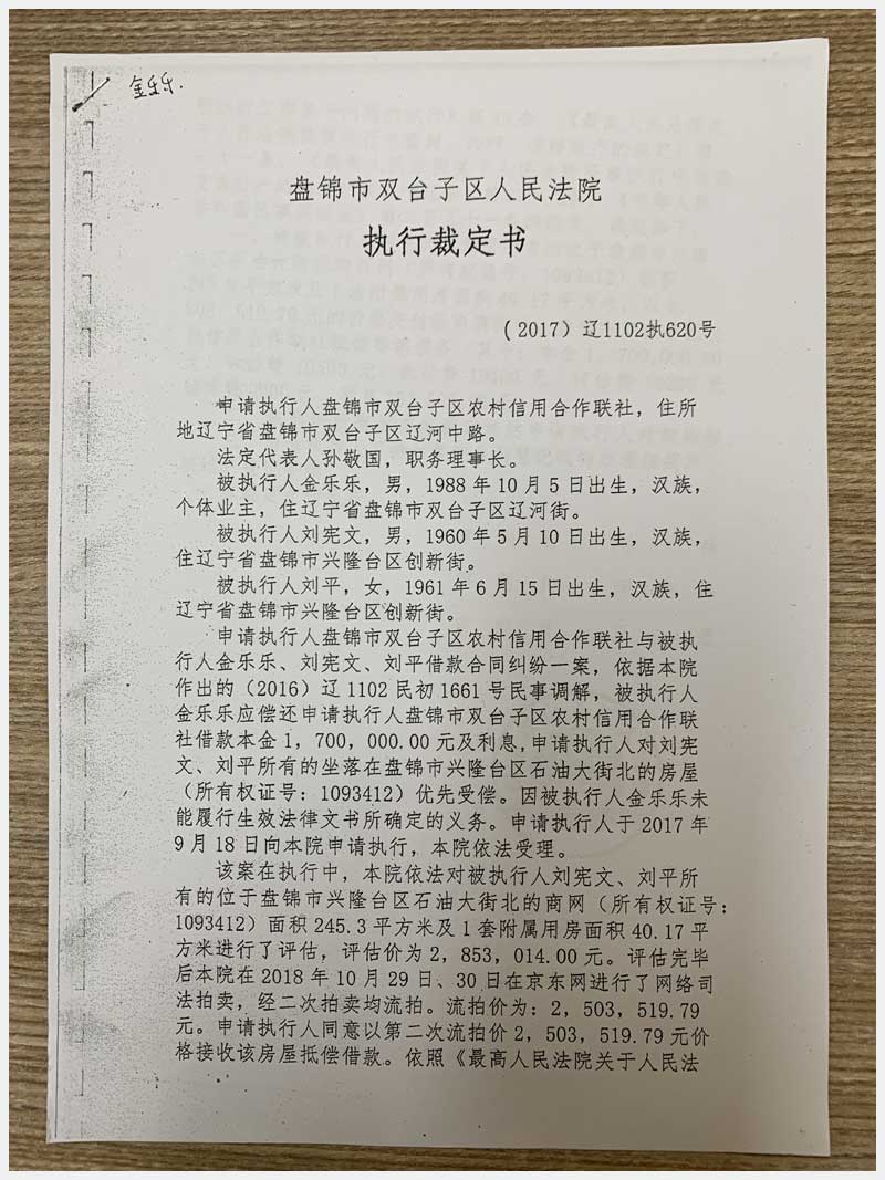 20號 盤錦市興隆臺區(qū)石油大街北房產(chǎn)(金樂樂)