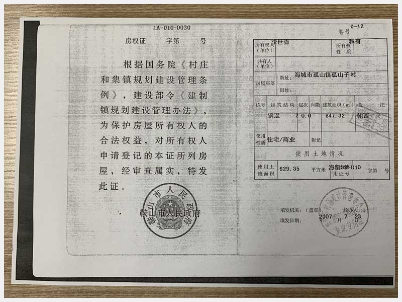 地址:海城市孤山鎮(zhèn)孤山村 標(biāo)的號:2