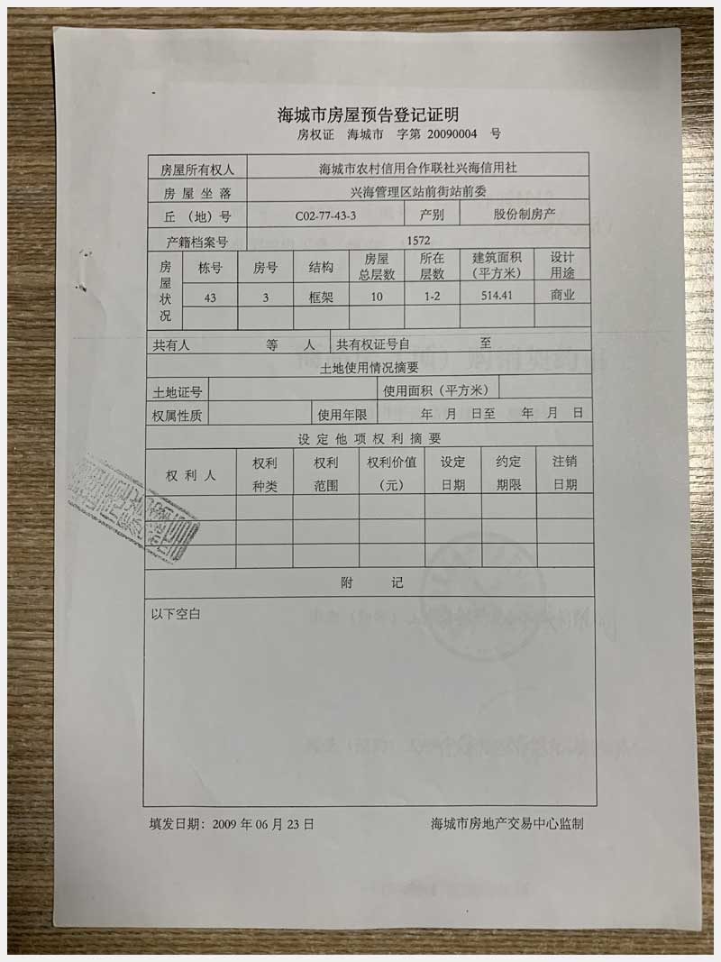 名稱:海城市興海管理區(qū)站前街沈鐵大廈41號框架樓3號門點 面積:514.41㎡ 瀏覽次數(shù):1647