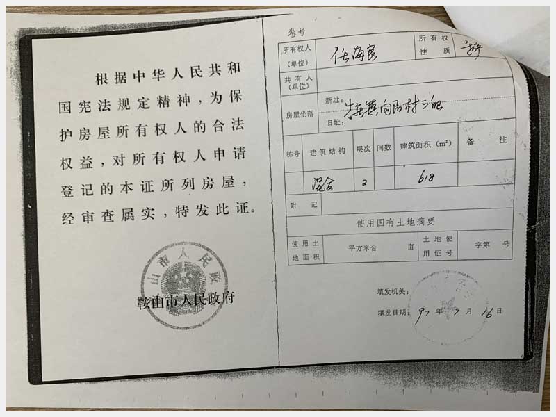 120號(hào) 海城市牛莊鎮(zhèn)向陽村三組房產(chǎn)及國有土地使用權(quán)