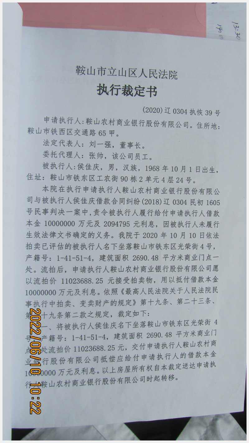 地址:鞍山市鐵東區(qū)光榮街4號(hào) 標(biāo)的號(hào):72