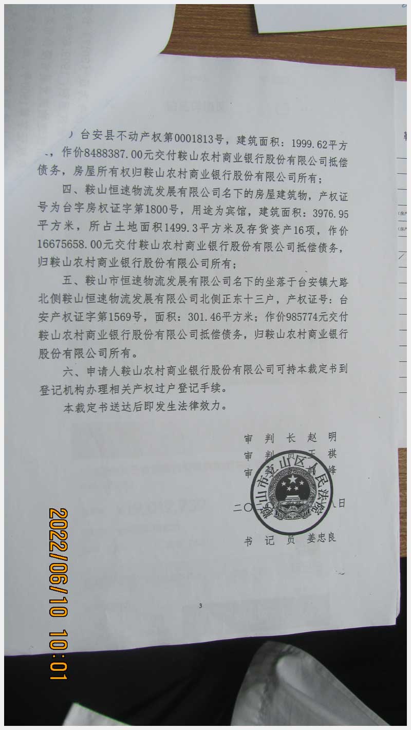 名稱:臺安鎮(zhèn)臺大路北側(cè)鞍山恒速物流發(fā)展有限公司北側(cè)正房東十三戶房產(chǎn) 面積:301.46㎡ 瀏覽次數(shù):1043