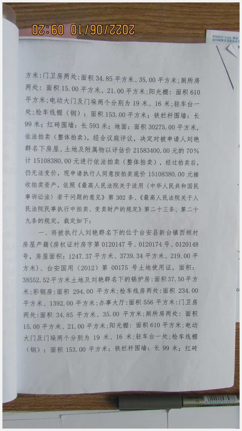 名稱:臺(tái)安縣新臺(tái)鎮(zhèn)西桓村房產(chǎn)及土地使用權(quán) 面積:房產(chǎn):5205.71㎡;土地:38552.52㎡ 瀏覽次數(shù):1068