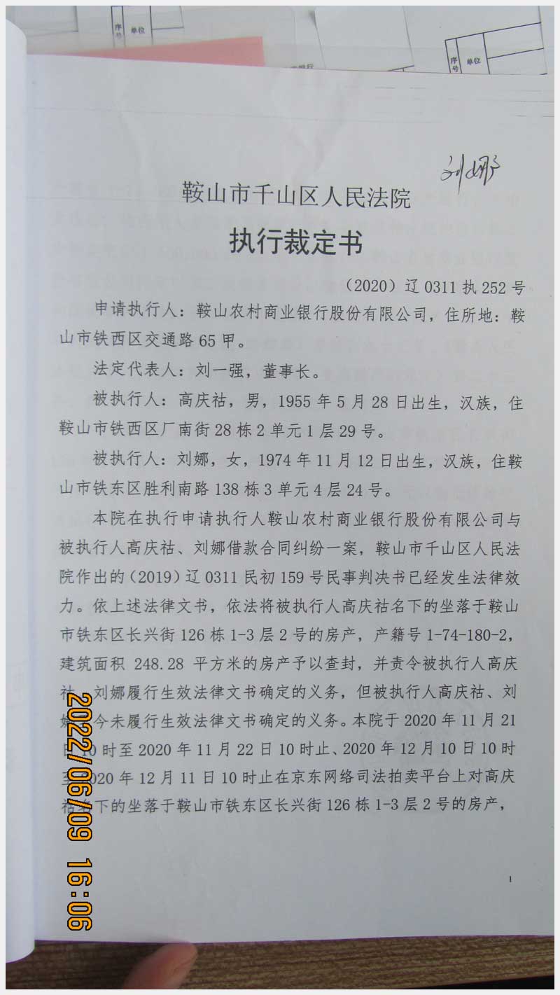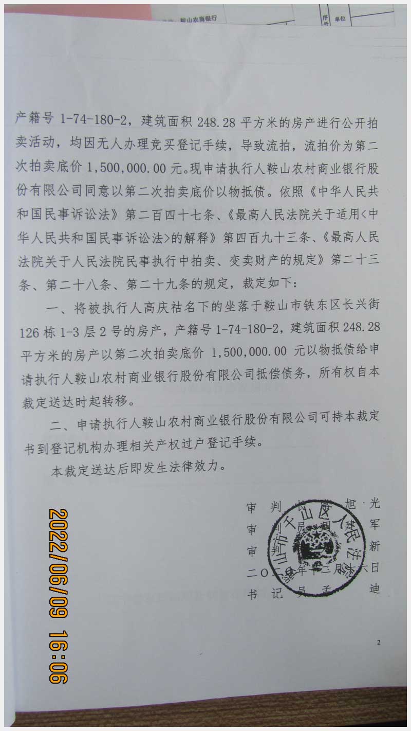 地址:鞍山市鐵東區(qū)長興街126棟 標(biāo)的號:85