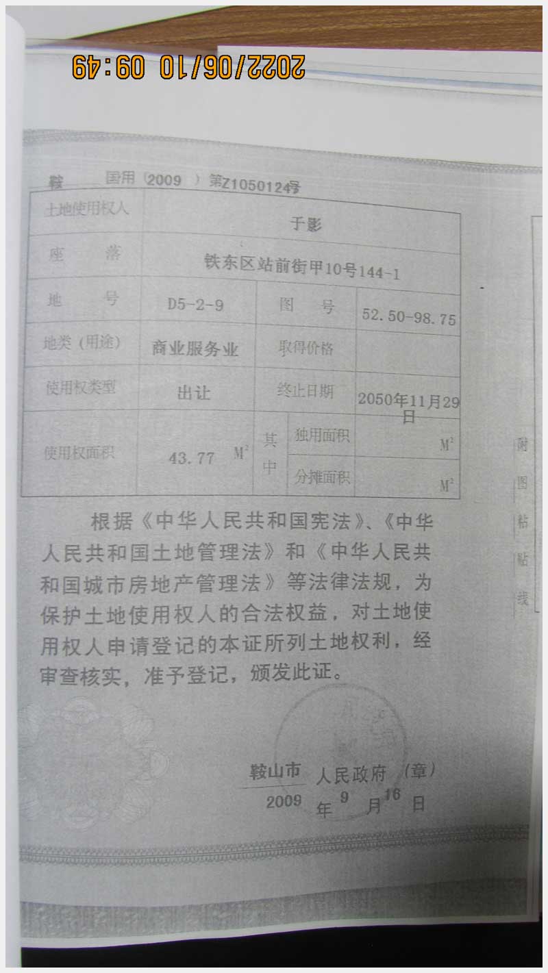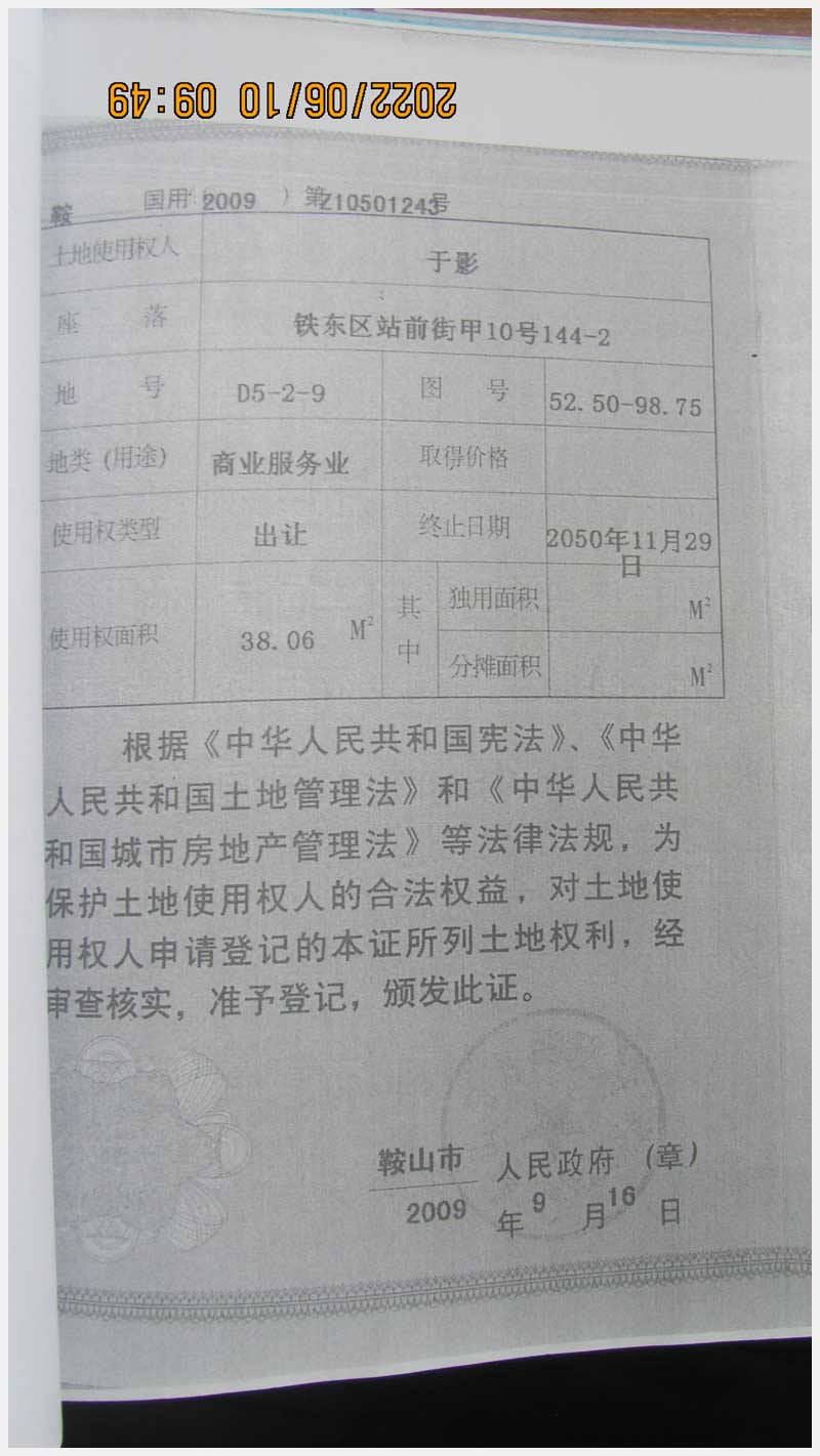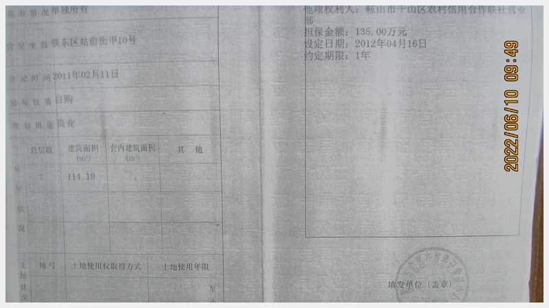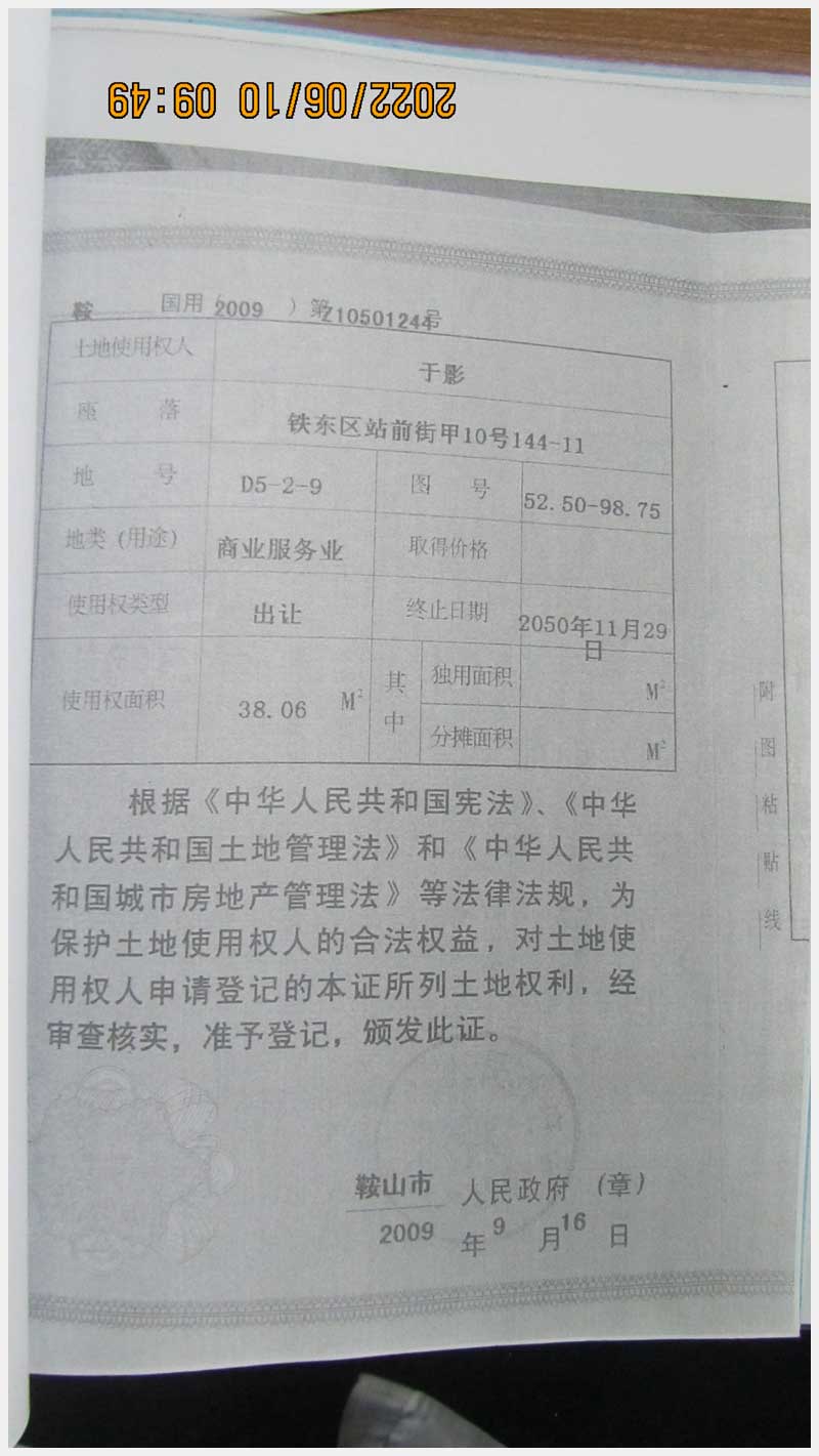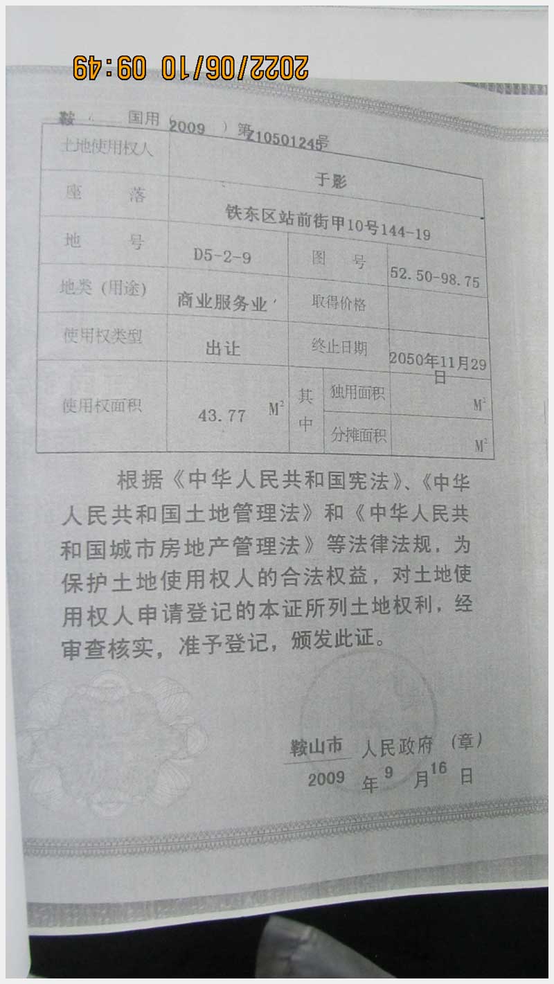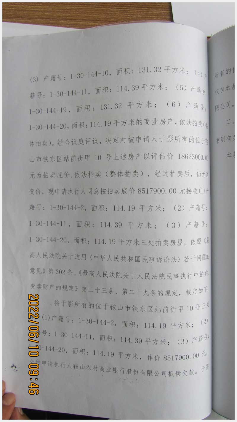 地址:鞍山市鐵東區(qū)站前街甲10號(hào) 標(biāo)的號(hào):89