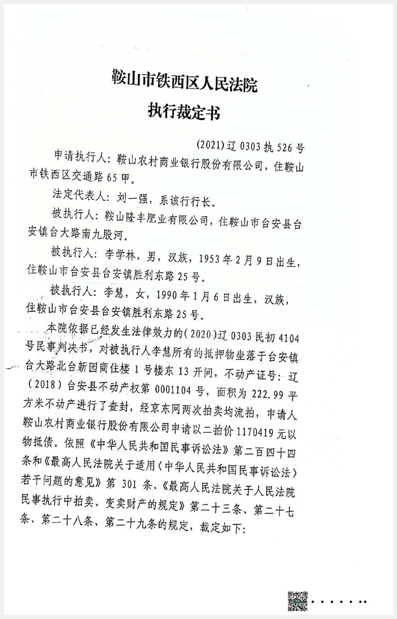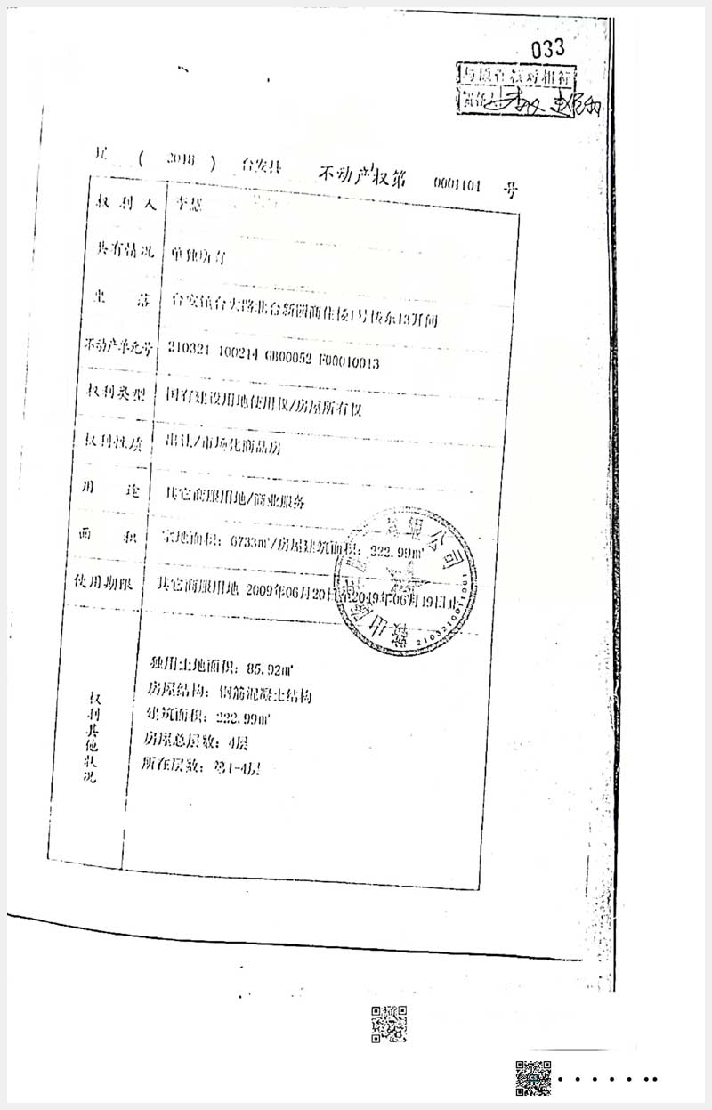 地址:臺(tái)安鎮(zhèn)臺(tái)大路北臺(tái)新園商住樓1號(hào)樓 標(biāo)的號(hào):99