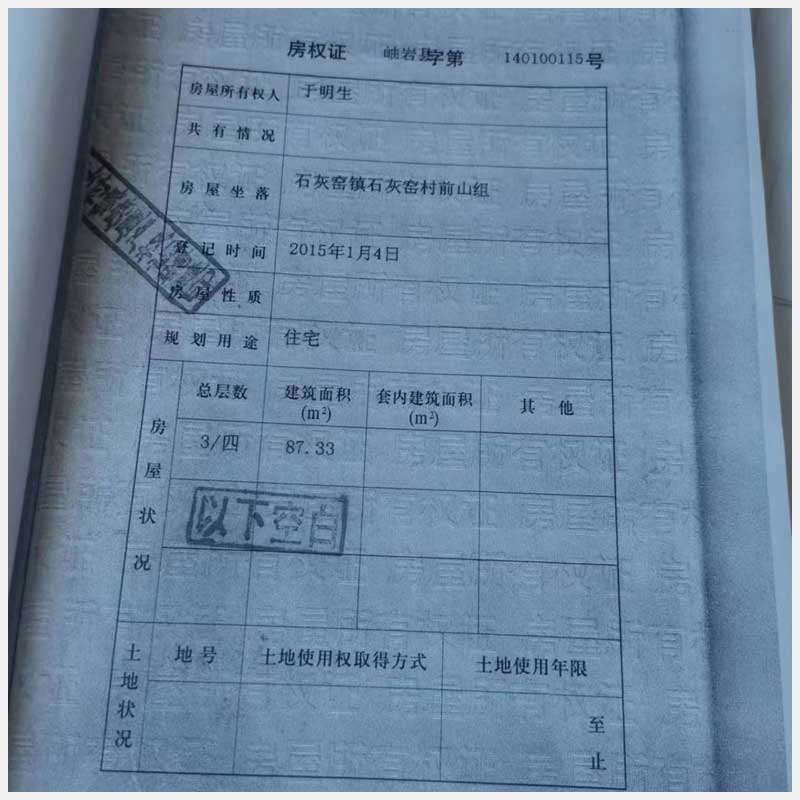 名稱(chēng):岫巖滿(mǎn)族自治縣石灰窯鎮(zhèn)石灰窯村前山組房產(chǎn) 面積:87.33㎡ 瀏覽次數(shù):797