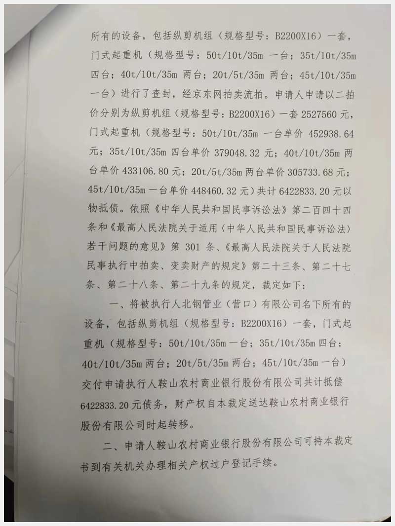 101號 北鋼管業(yè)(營口)有限公司所屬的機器設(shè)備