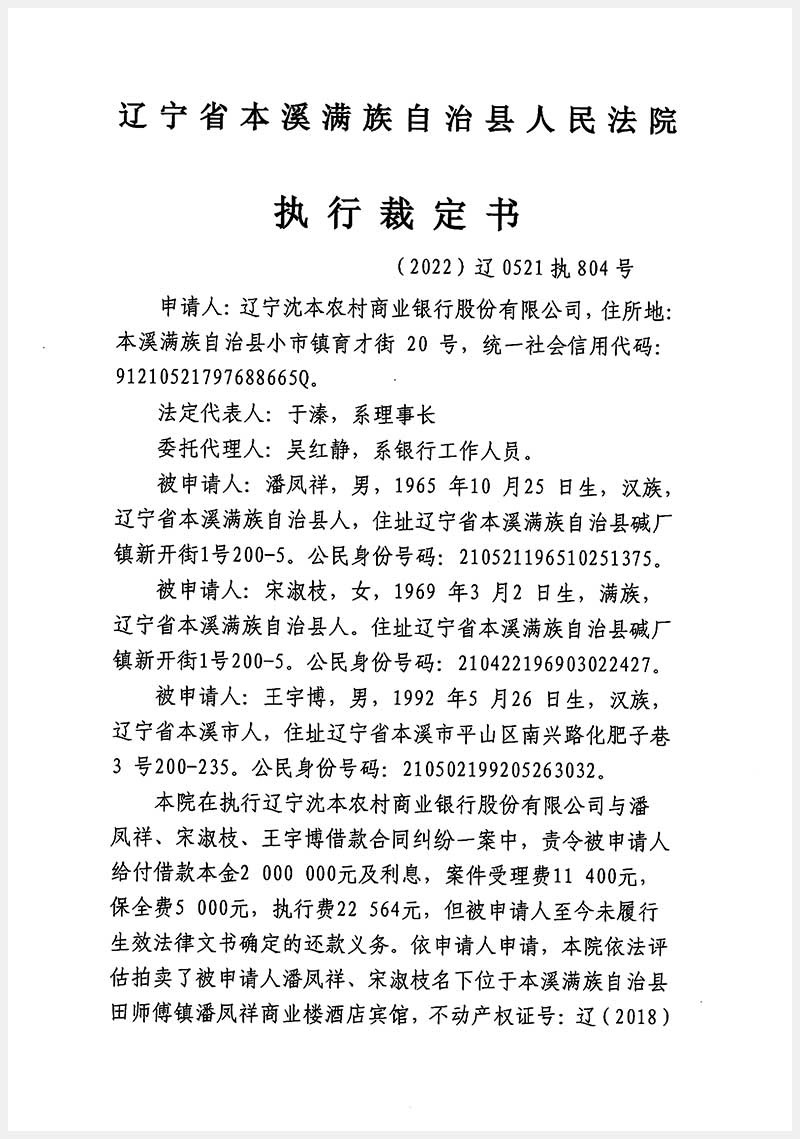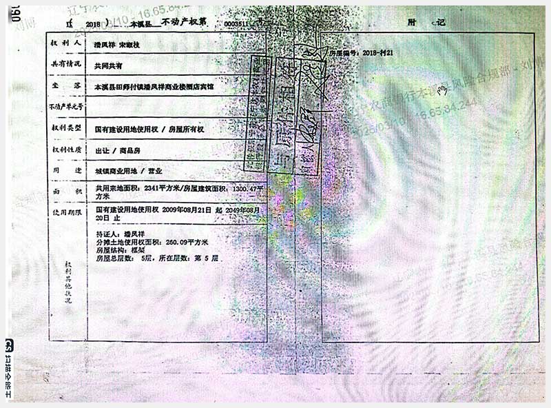 152號(hào) 本溪滿族自治縣田師付鎮(zhèn)潘鳳祥商業(yè)樓酒店賓館