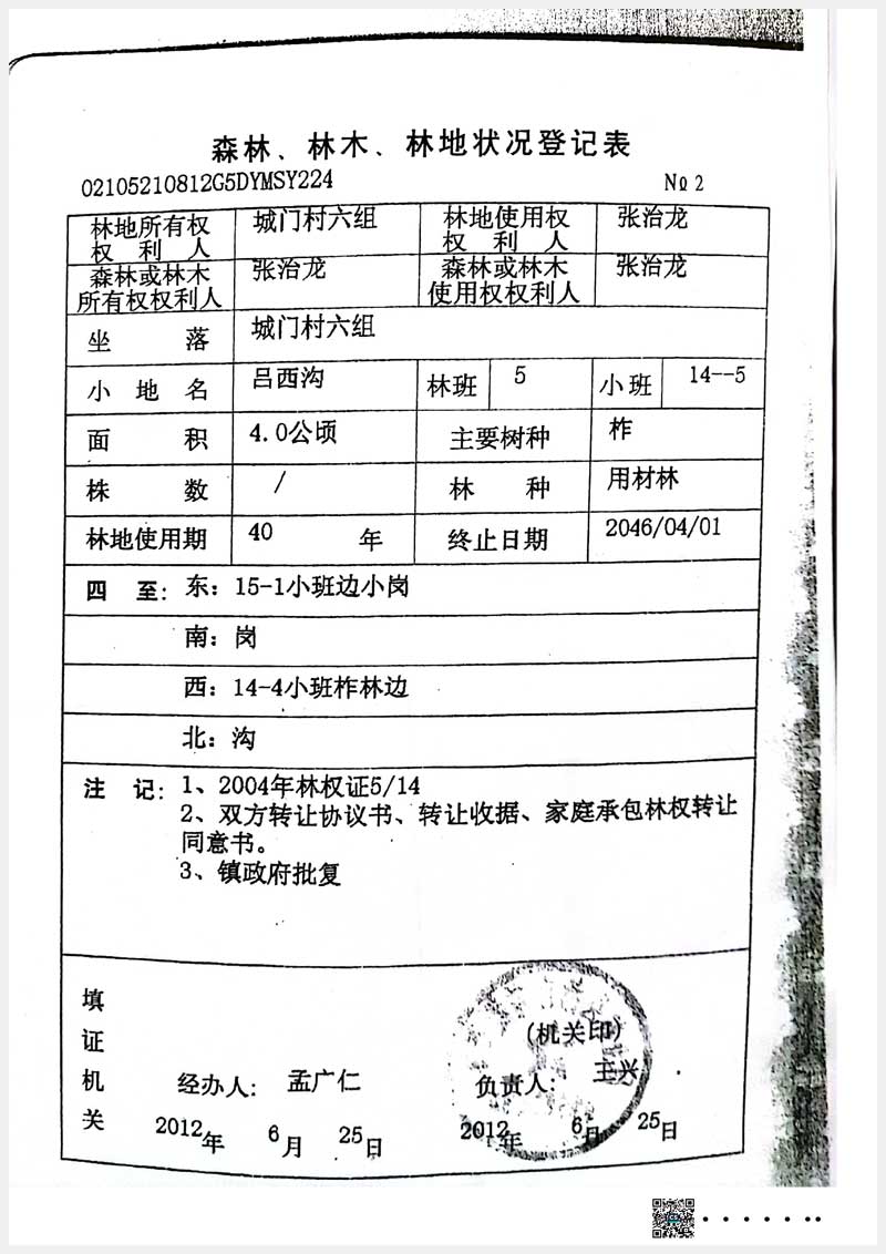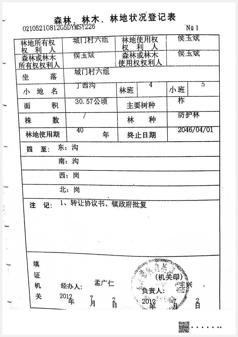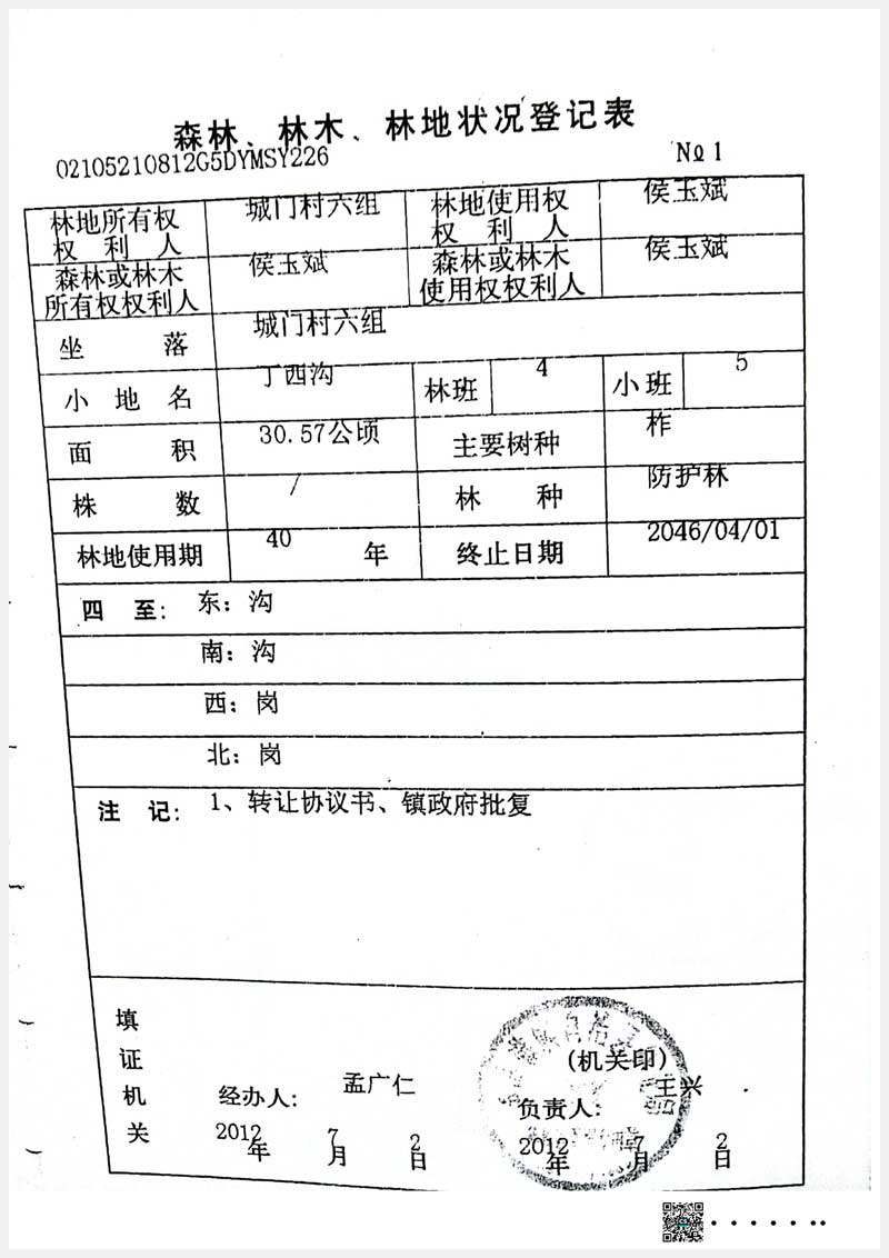 160號(hào) 本溪滿族自治縣城門(mén)村六組林權(quán)
