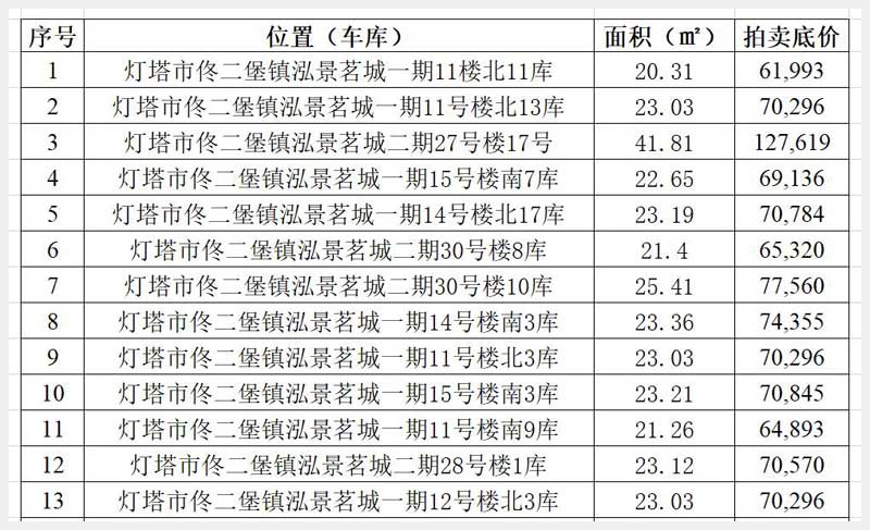 名稱:遼陽市佟二堡鎮(zhèn)佟二堡村泓景茗城小區(qū)一期車庫 面積:詳見圖片 瀏覽次數(shù):394