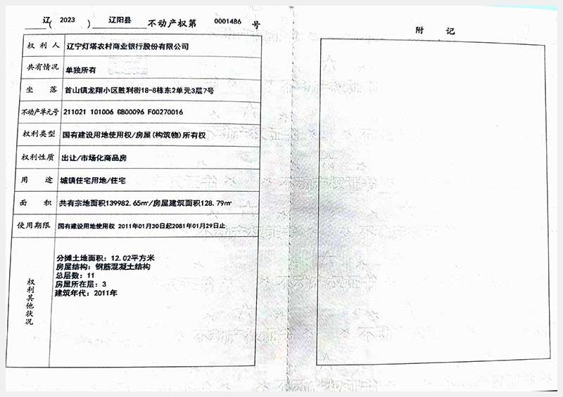 59號(hào) 遼陽(yáng)市首山鎮(zhèn)龍翔小區(qū)勝利街18棟房產(chǎn)