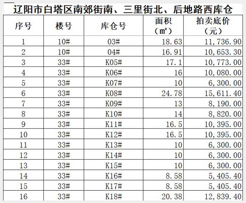 名稱:遼陽(yáng)市白塔區(qū)南郊街南、三里街北、后地路西(華御世家)庫(kù)倉(cāng) 面積:8.58㎡—29㎡(詳見(jiàn)圖表) 瀏覽次數(shù):283