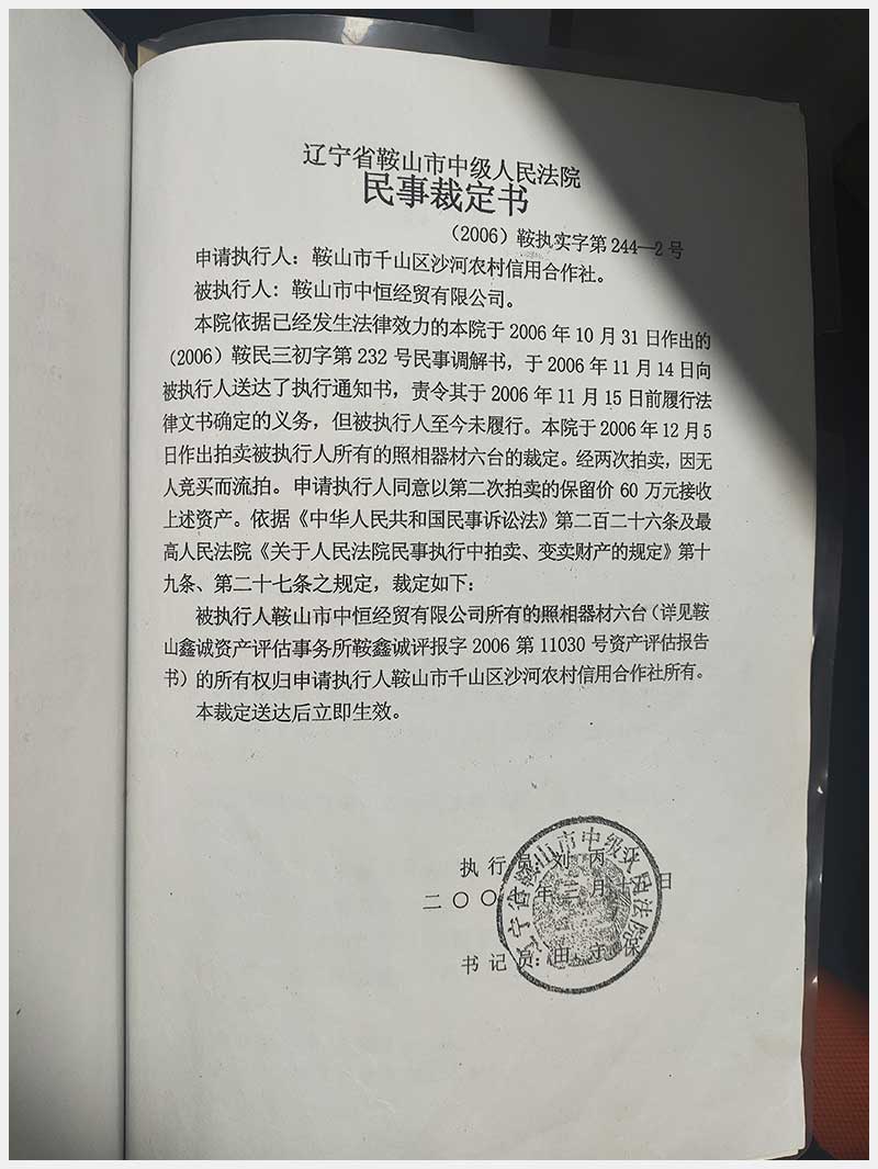 102號 鞍山市中恒經(jīng)貿(mào)有限公司機器設(shè)備