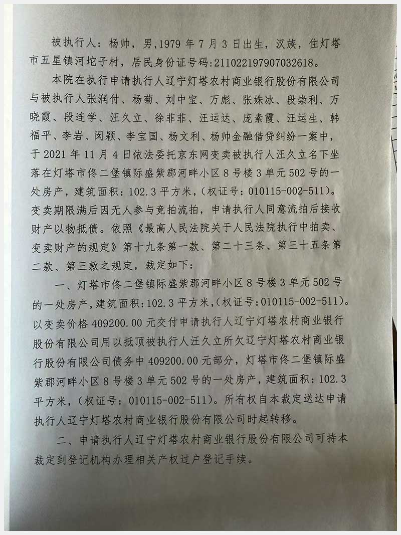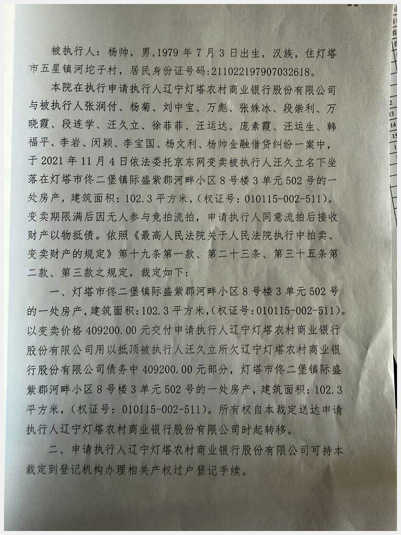 79號 燈塔市佟二堡鎮(zhèn)際盛紫郡河畔小區(qū)8號樓3單元502號房產(chǎn)
