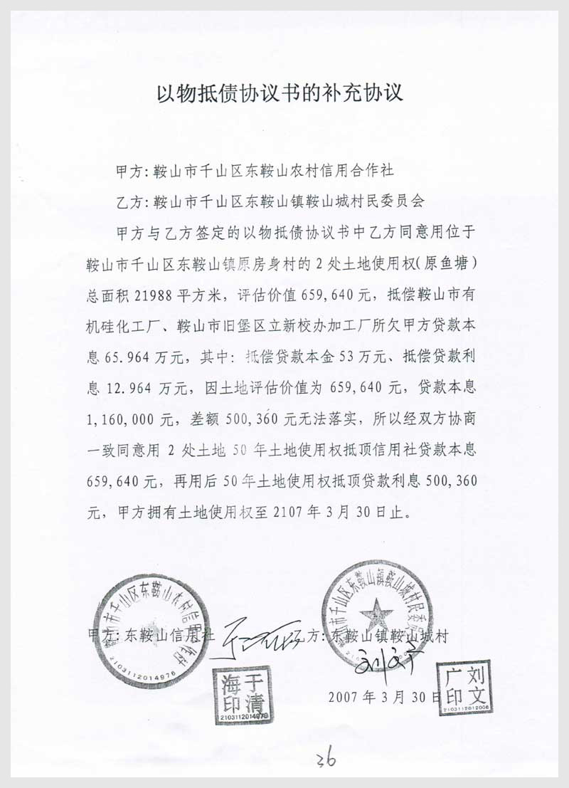 20號(hào) 鞍山市千山區(qū)東鞍山鎮(zhèn)原房身村2處土地使用權(quán)