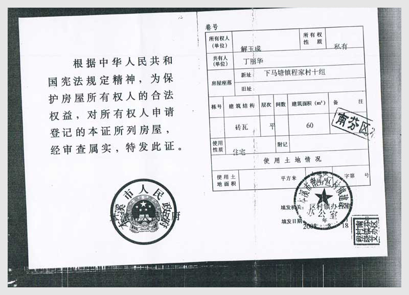 名稱:南芬區(qū)下馬塘鎮(zhèn)程家村十組房產(chǎn)10處 面積:共600㎡ 瀏覽次數(shù):2497
