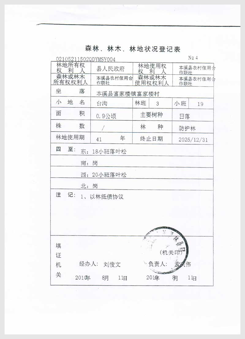 44號(hào) 本溪縣富家樓鎮(zhèn)富家樓村落葉(防護(hù)林)