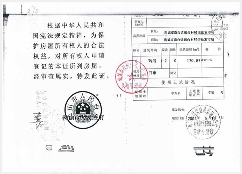 111號(hào) 海城市南臺(tái)鎮(zhèn)煙臺(tái)村鮮蛋批發(fā)市場(chǎng)房產(chǎn)