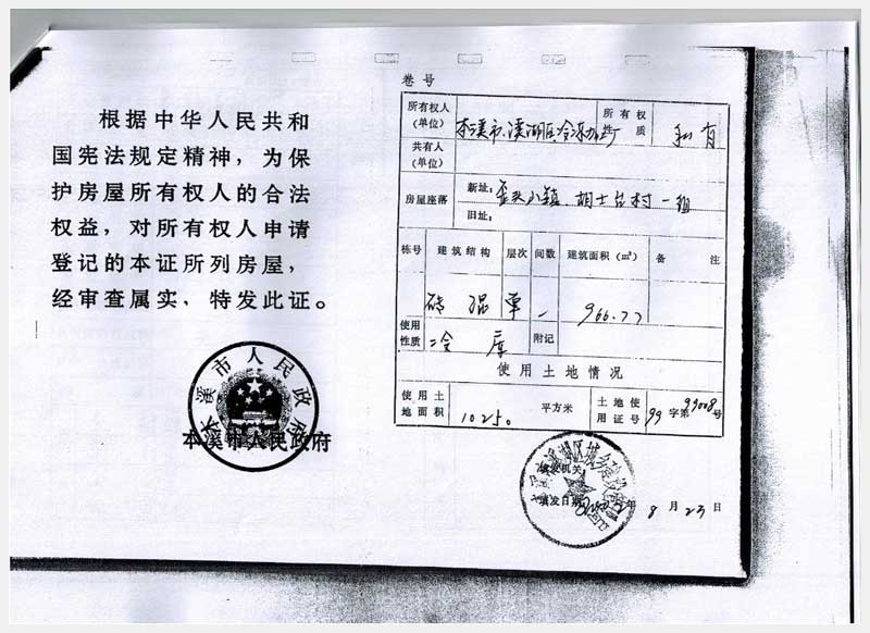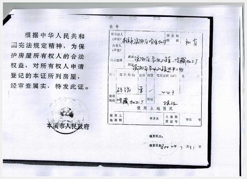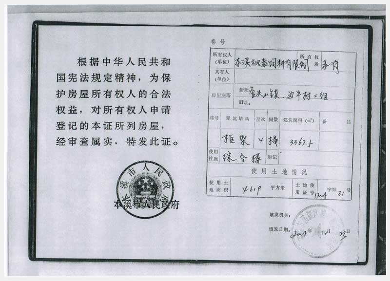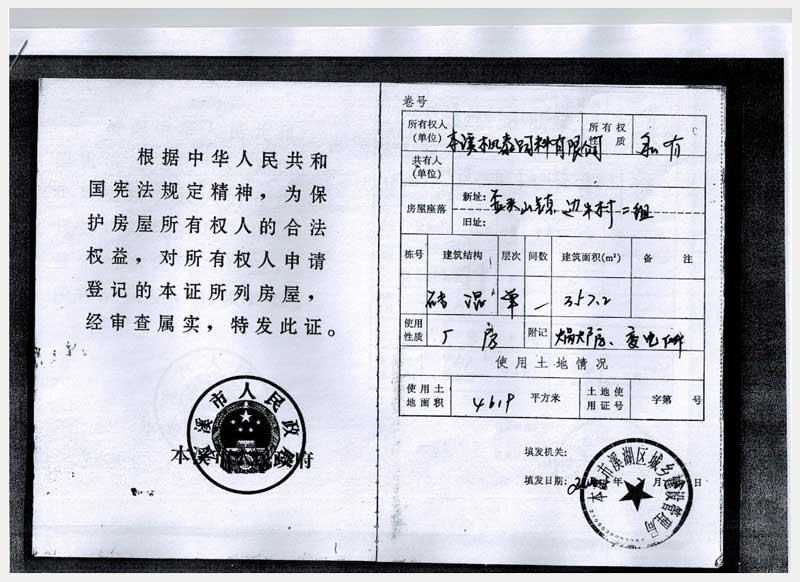 20號(hào) 本溪市溪湖區(qū)歪頭山鎮(zhèn)邊牛村房產(chǎn)、土地及機(jī)器設(shè)備