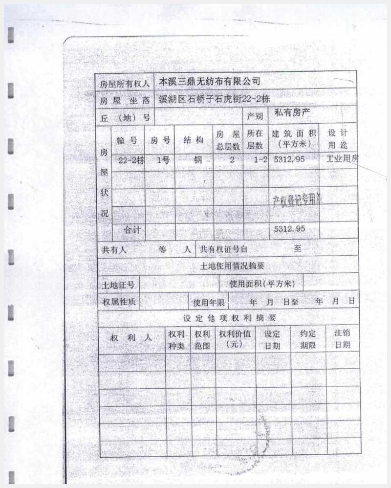 名稱:本溪市溪湖區(qū)石橋子石虎街22-1棟工業(yè)用房 面積:11260.06㎡ 瀏覽次數(shù):2221