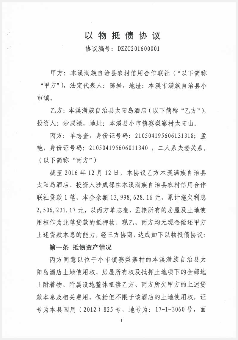 58號 本溪滿族自治縣太陽島酒店房產、土地及附屬設施