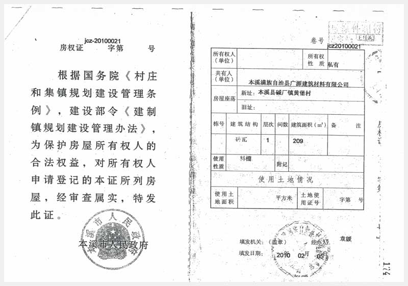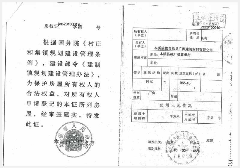 62號(hào) 本溪縣堿廠鎮(zhèn)黃堡村房產(chǎn)7處、土地2處及設(shè)備25項(xiàng)