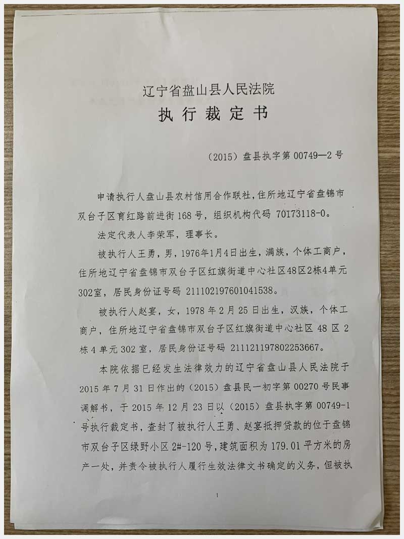 地址:盤錦綠野小區(qū) 標(biāo)的號(hào):38