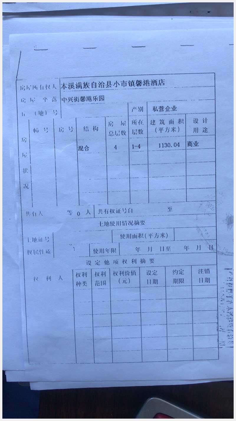 名稱:本溪滿族自治縣中興街馨港樂(lè)園馨港酒店房產(chǎn)及土地 面積:房產(chǎn):有證:4440.21㎡,無(wú)證:672.51㎡;土地:713㎡ 瀏覽次數(shù):1407