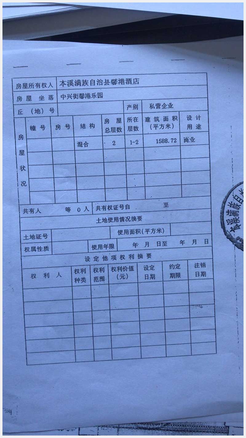 79號(hào) 本溪滿族自治縣中興街馨港樂(lè)園馨港酒店房產(chǎn)及土地