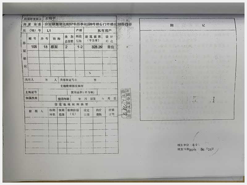 名稱:臺安縣臺安鎮(zhèn)繁榮北街57號四季花園門市樓13、14、15、16、17、18、19、20號 面積:13號:220.85㎡、14號:144.81㎡、15號:57.22㎡、16號:326.01㎡、17號:104.6㎡、18號:328.29㎡、19號:338.24㎡、20號:114.54㎡ 瀏覽次數(shù):1594
