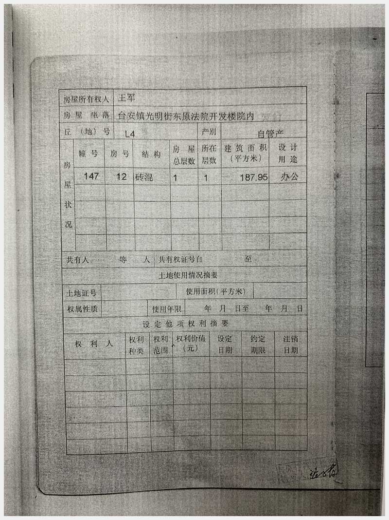 78-1號 臺安鎮(zhèn)光明街東原法院開發(fā)樓院內房產(chǎn)