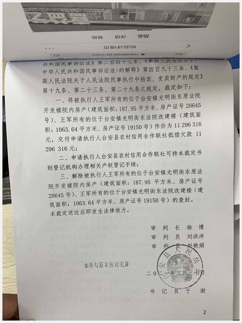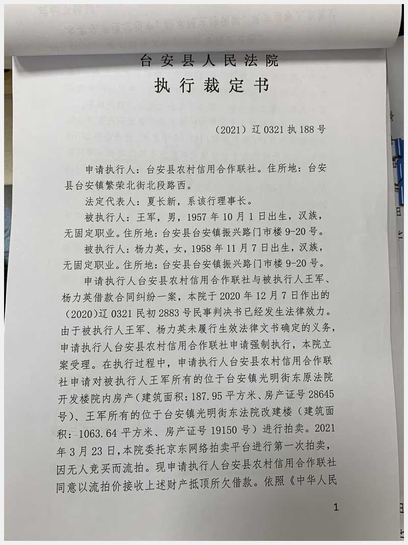地址:臺安鎮(zhèn)光明街東法院改建樓 標的號:78-2