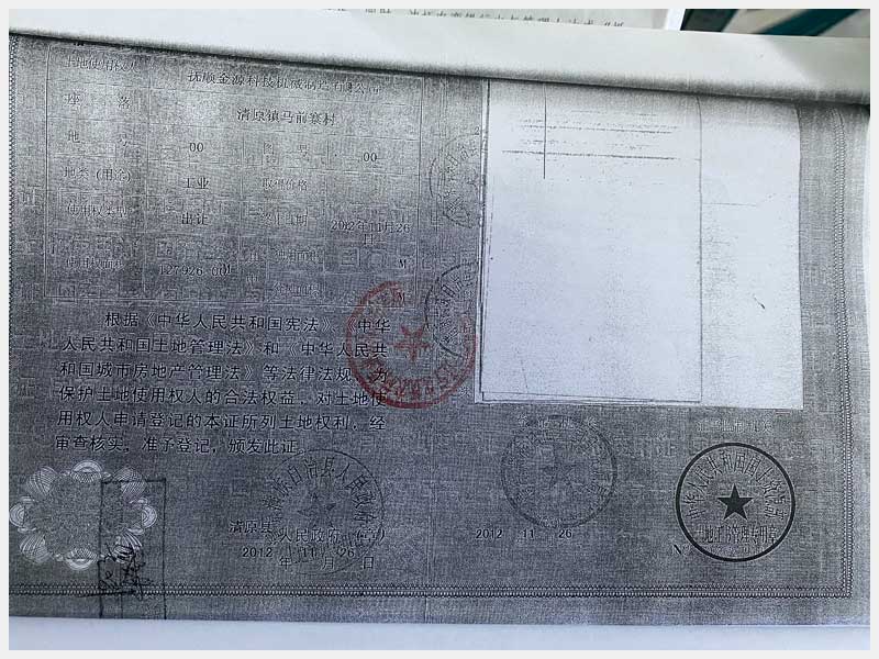 8號(hào) 撫順市清原滿族自治縣馬前寨土地使用權(quán)