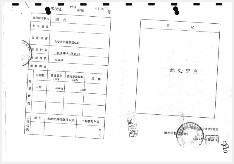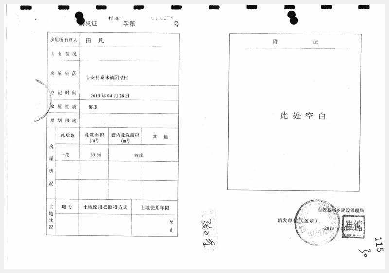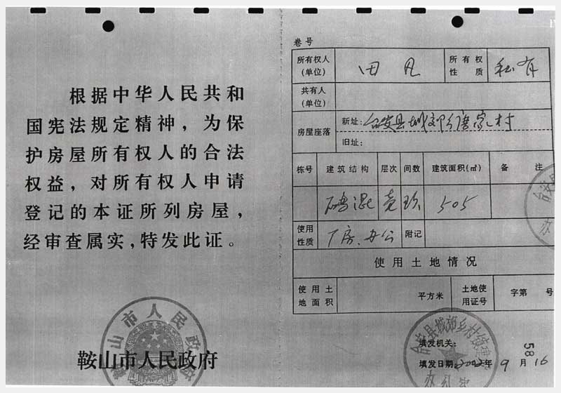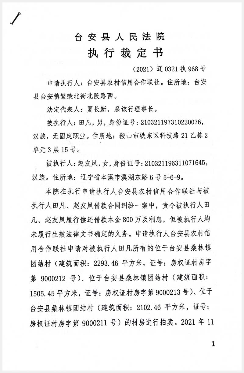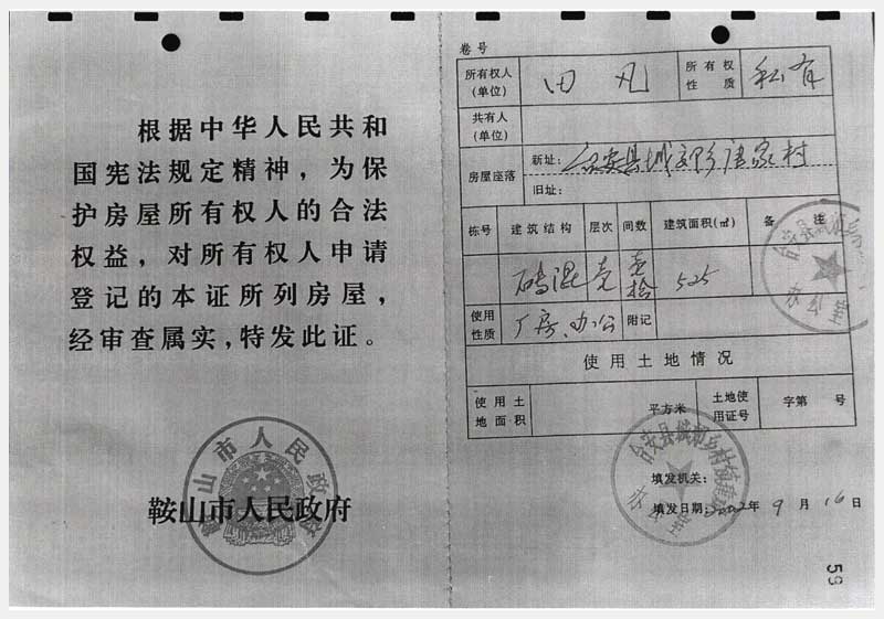 91號 臺(tái)安縣桑林鎮(zhèn)團(tuán)結(jié)村房產(chǎn)及國有土地使用權(quán)