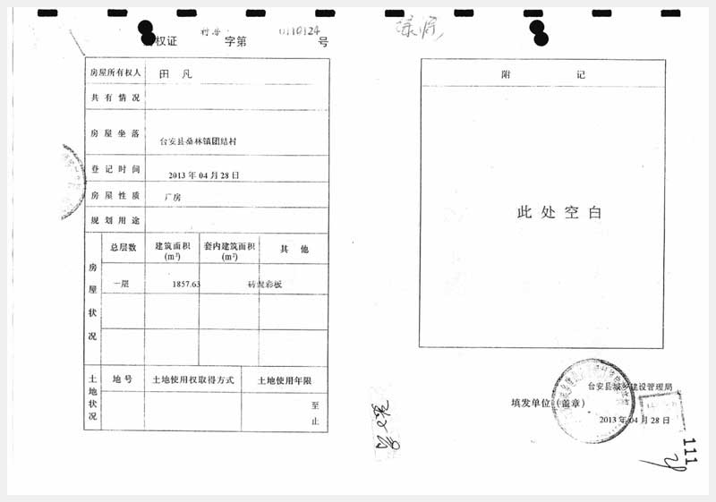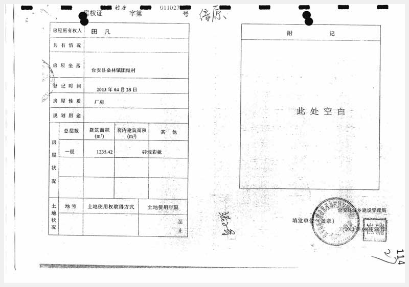 地址:臺(tái)安縣桑林鎮(zhèn)團(tuán)結(jié)村 標(biāo)的號:91